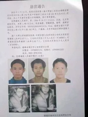 福州警方证实该悬赏通告由其所发。图片来自网络