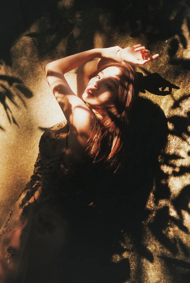 我选择的拍摄场景多是适宜呈现复古感或自然气氛浓郁的环境,比如老旧的酒店、光影斑驳的树林、散发着颓败气息的废墟等。拍摄的时候全部利用自然光和现场光源,铺设太多外置灯光与追求自然表现的风格不相符合。当然我个人也比较懒,一对一的私密拍摄也很难携带多余的灯光器材。一般来说,我更喜欢在黄昏时拍摄,此时太阳光线最柔和,光影也比较明显。所以可以看到,我的照片大部分都呈现为暖色调。