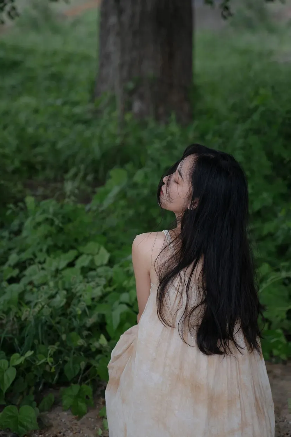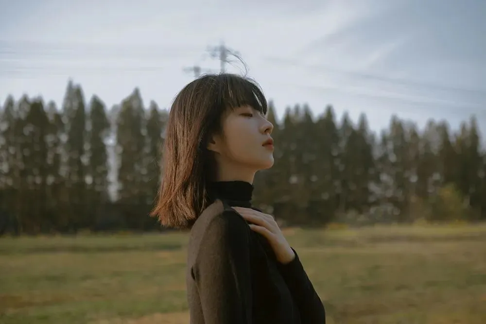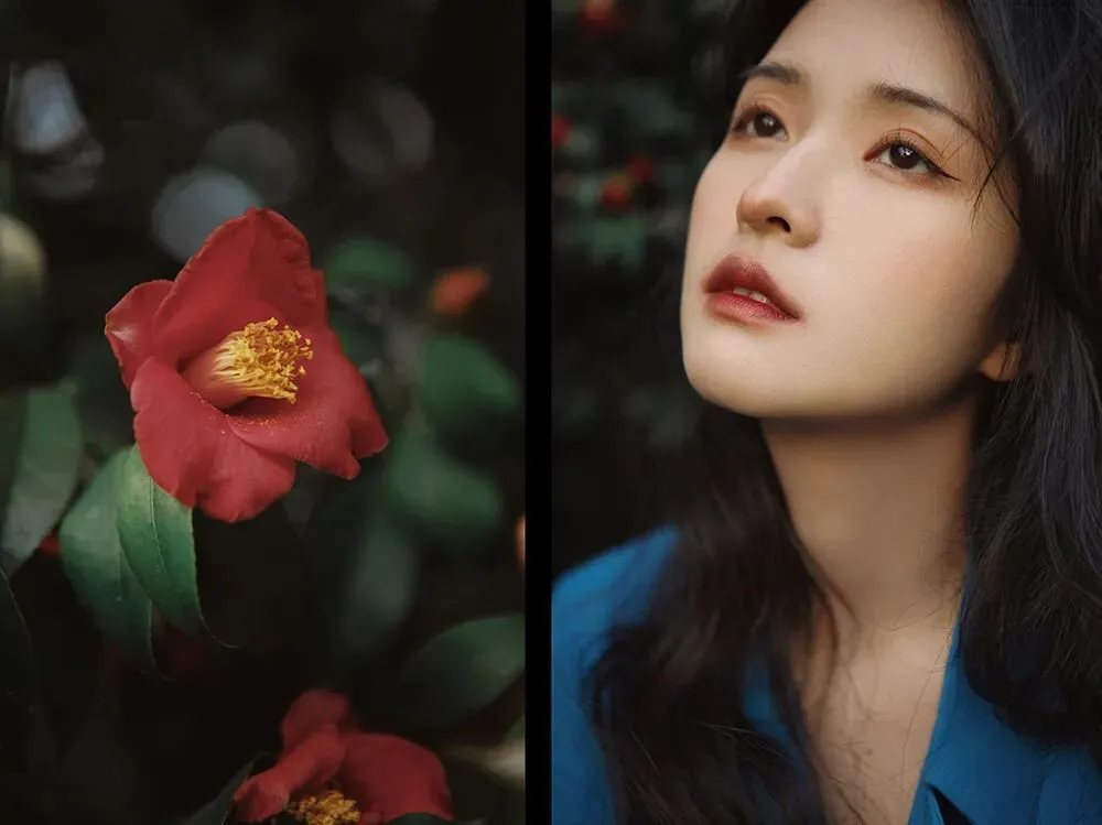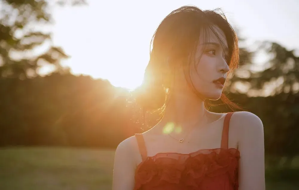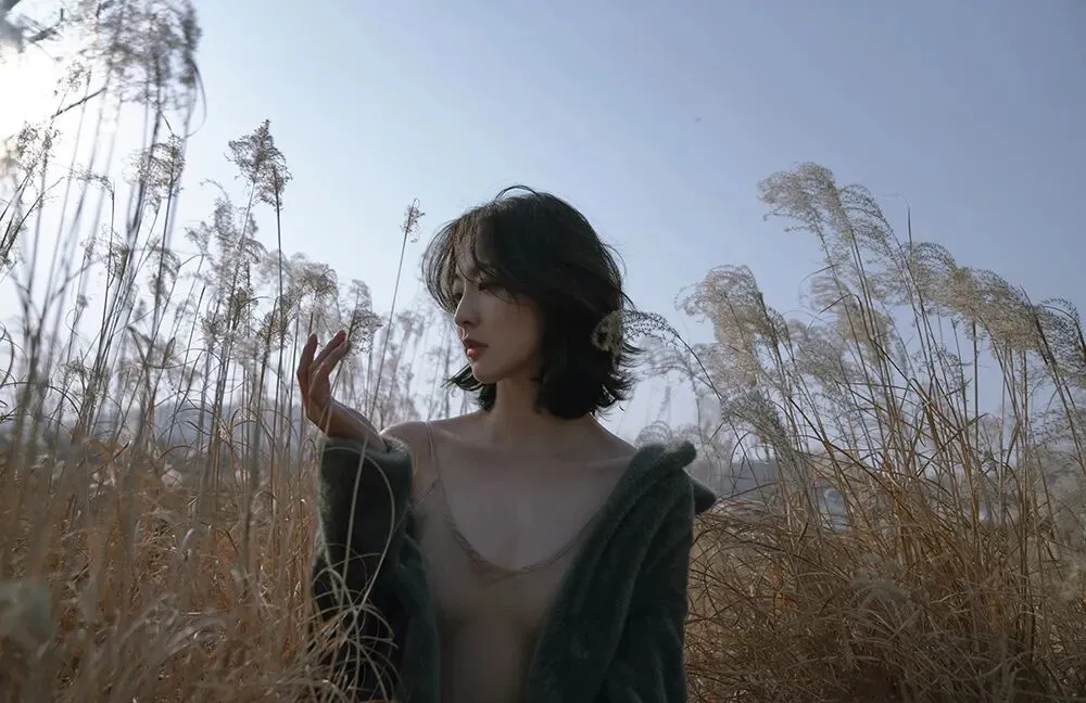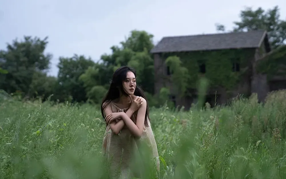不面向镜头的动作是更有故事感的,所以拍摄时我会让模特专注做自己的事情,或是欣赏美景,或是亲近自然,或者安静的翻一本书,只是当我需要拍摄眼神的时候再让模特看向镜头。眼神在拍摄中也是非常重要的一点,因为眼睛可以体现心灵,眼白太多会破坏整体的美感,眼神既要灵动,也要包含故事,眼睛所看的方向也会引导观者的视线。