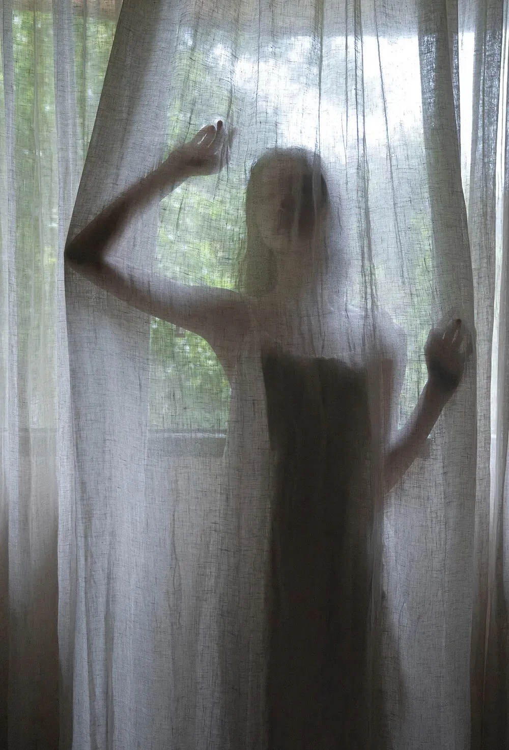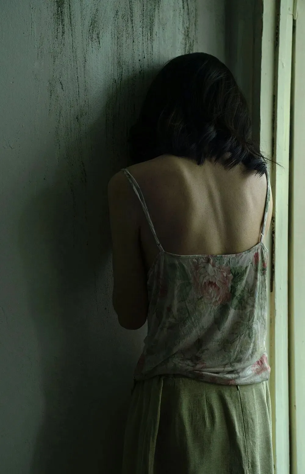 光线主要使用了逆光和侧逆光,用从窗户照射进来打在人物面部的光拍摄侧光,或是拍摄在人物后方逆光形成的剪影,可以更加突出孤独感。由于想要体现安静深邃的感觉,所以最初在定调时就将这组设置成了冷色调,画面颜色并不丰富,后期只是在保证肤色正常的前提下进行了微调。