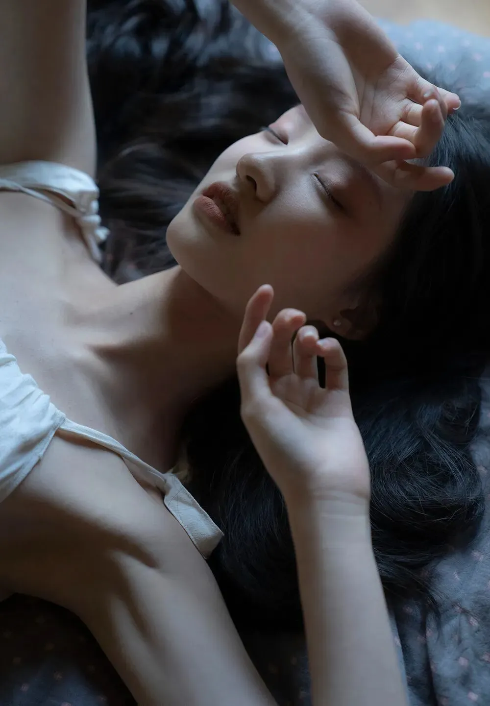 通常我会更加注重人物本身的情绪,因为情绪是一张照片的灵魂,人物状态大于一切,我希望透过人物的眼神让观者看到更深层次的东西。拍摄中会播放相应情绪的音乐来让现场安静下来,模特和我同步的去感受,在一定程度上寻找共鸣,让模特逐渐放松并思考一些过往的经历,进入到一个情境当中,直面自己的内心。