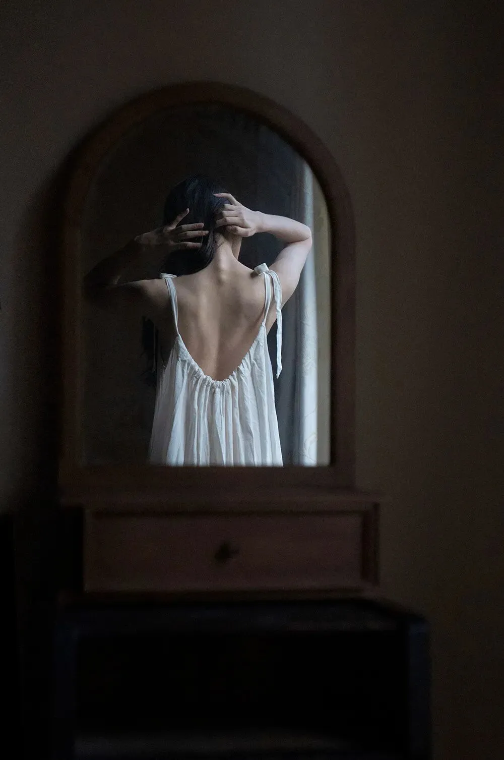 拍摄这类风格要以突出人物为主,环境、服饰和妆容等元素都是为了人物本身而服务的,修图时要注意暗部的细节,因为照片越暗,暗部的杂色就越难处理,同时也要注意光影的过渡不要太过生硬。