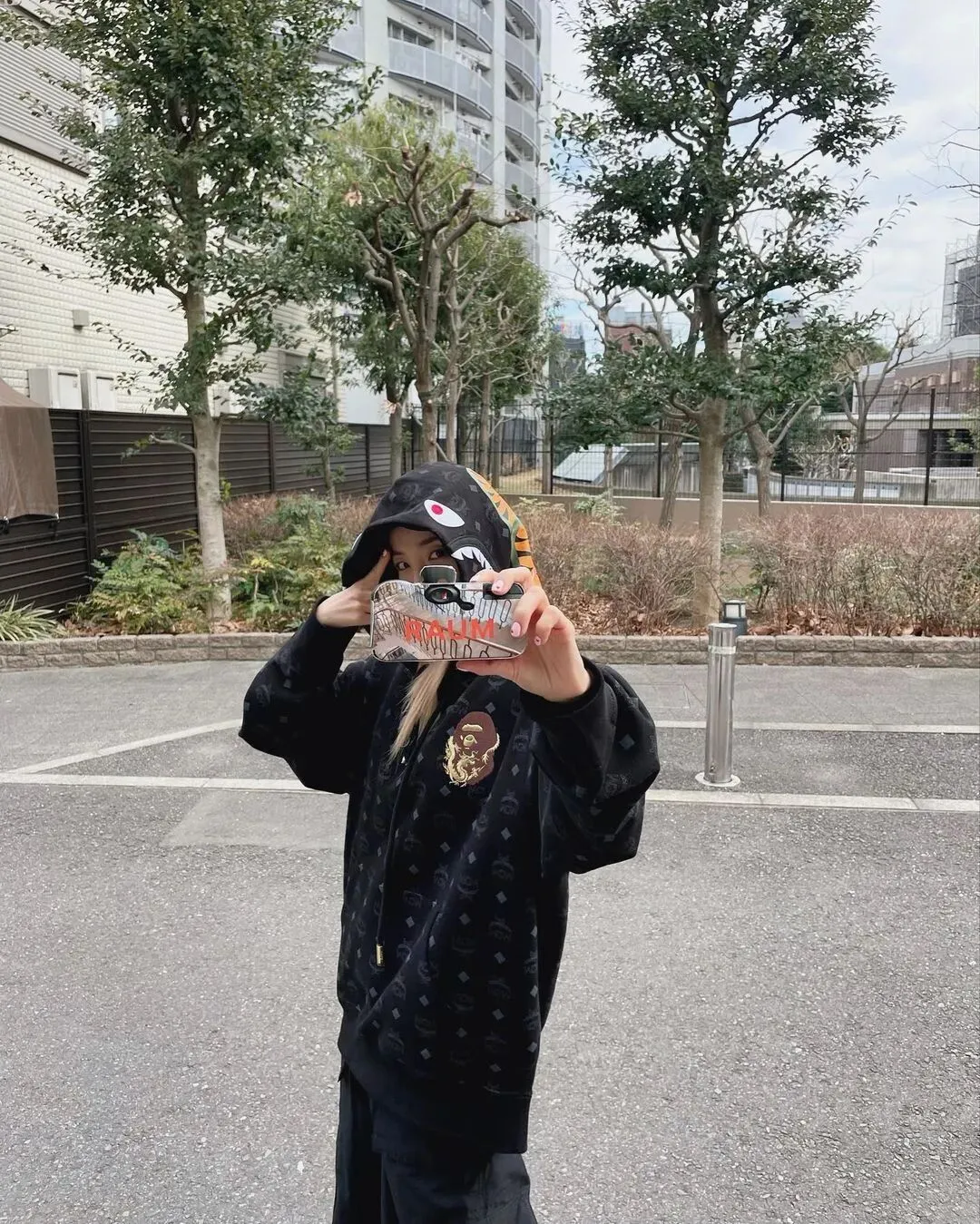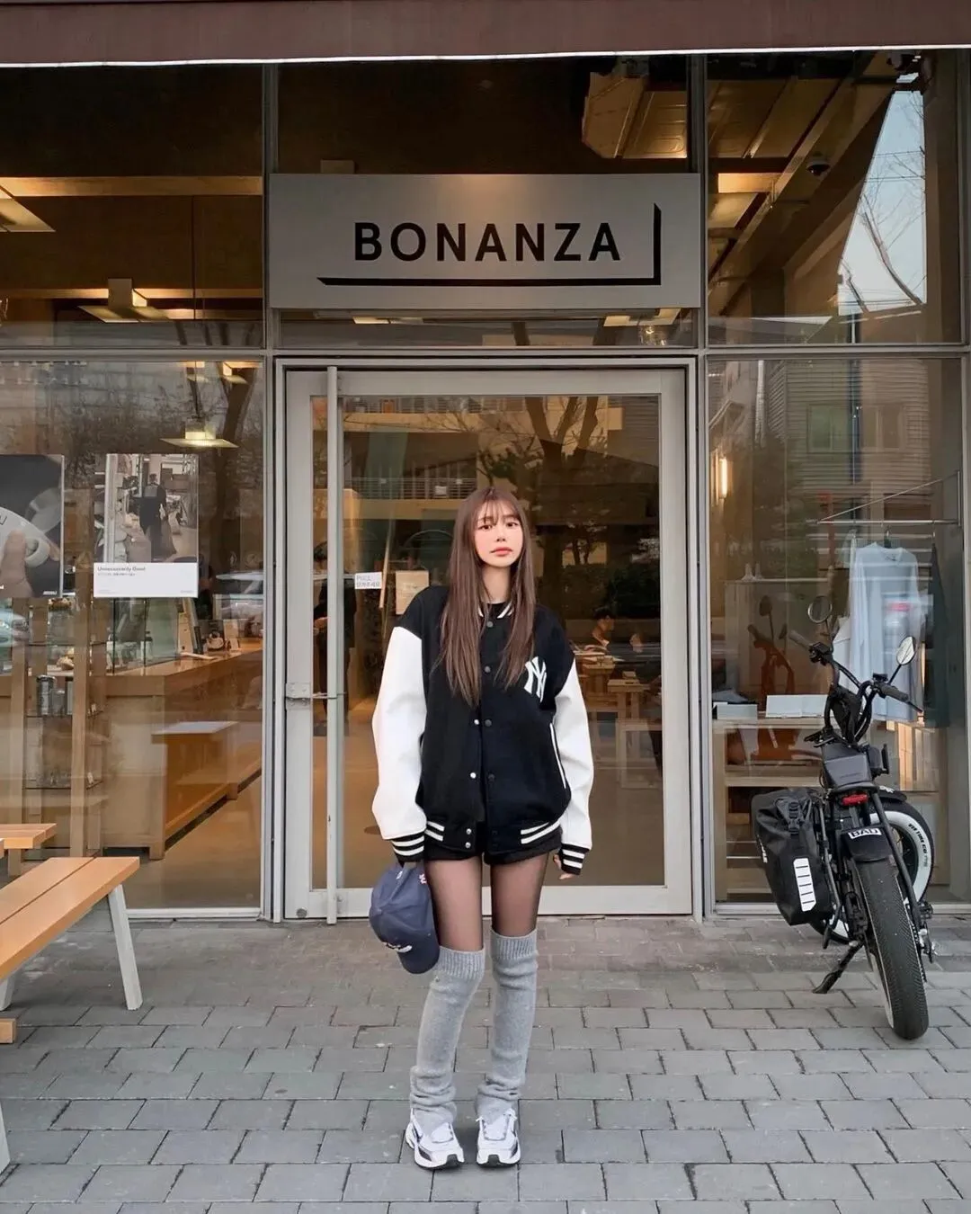 作为经常上身为 MLB 带货的网红之一,Hye Mi 在最近上身黑色 MLB 棒球夹克时搭配了一双 Nike 球鞋。