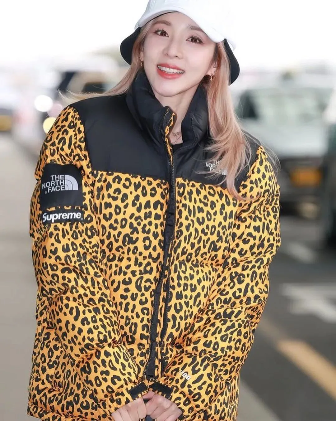 再度上身了 Supreme x The North Face 2011 年的豹纹羽绒服,在很多年前小编介绍朴山多拉的时候,她就曾上身过。