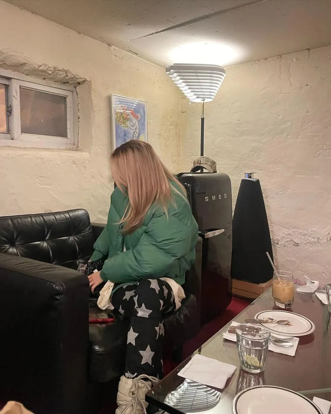 此外就是也上脚了 Moon Boot,虽然只露出一点点,但是小编还是细心的发现了,可以说冬季送女生的不二选择。