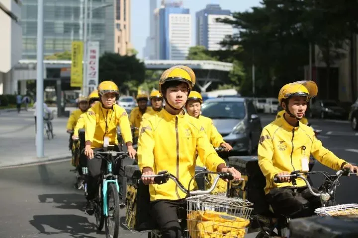 经过阿么的明察暗访,发现原来是广州CBD惊现史上最有牌面的外卖团队——美团小哥车队&美女COSER护送外卖。哇,看这阵容真的是闪闪发光,黄色bling bling两下子就闪耀全城~