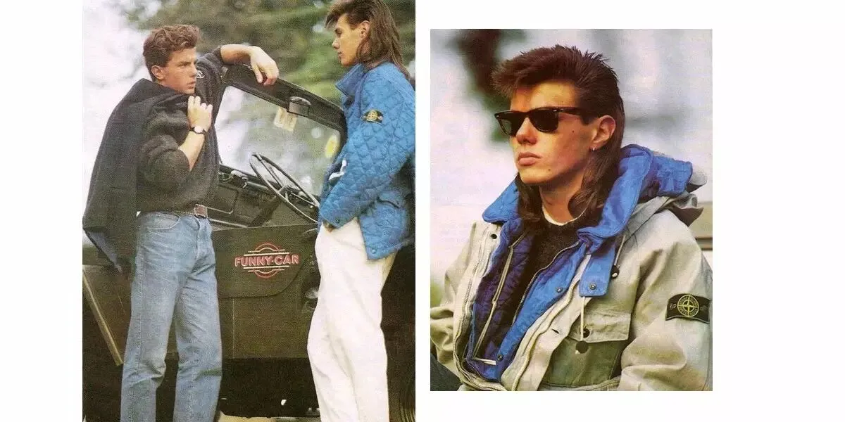 不过,最早看上Stone Island的,是在80年代中期,一群米兰的有钱年轻人——这个深受美国消费主义影响的次文化群体被称为Paninaro,他们会穿上C.P. Company、Moncler和Timberland这些品牌、开着他们的机动自行车穿梭在各个咖啡厅间。