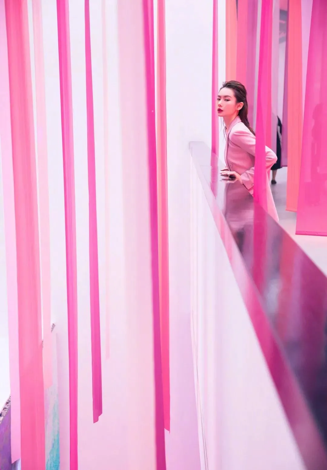 轻轻靠在长廊上眺望远方
