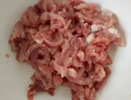 制作过程:第一步,首先一块猪里脊肉,清洗干净后,控干其中的水分,将猪肉切成细细的丝,放入一个容器中,加上1勺的生抽,适量的食盐、料酒和淀粉,用手将其抓拌均匀后,腌制15分钟;