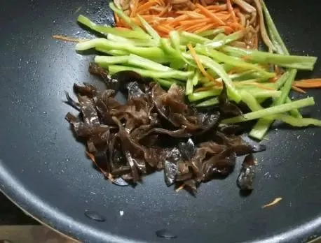3、第二个小妙招,最后用水淀粉勾芡的一步也不能少,很多人将肉丝和蔬菜炒熟就出锅,难怪口感不是很好,其实再淋入少许的水淀粉,口感便会提升不少。