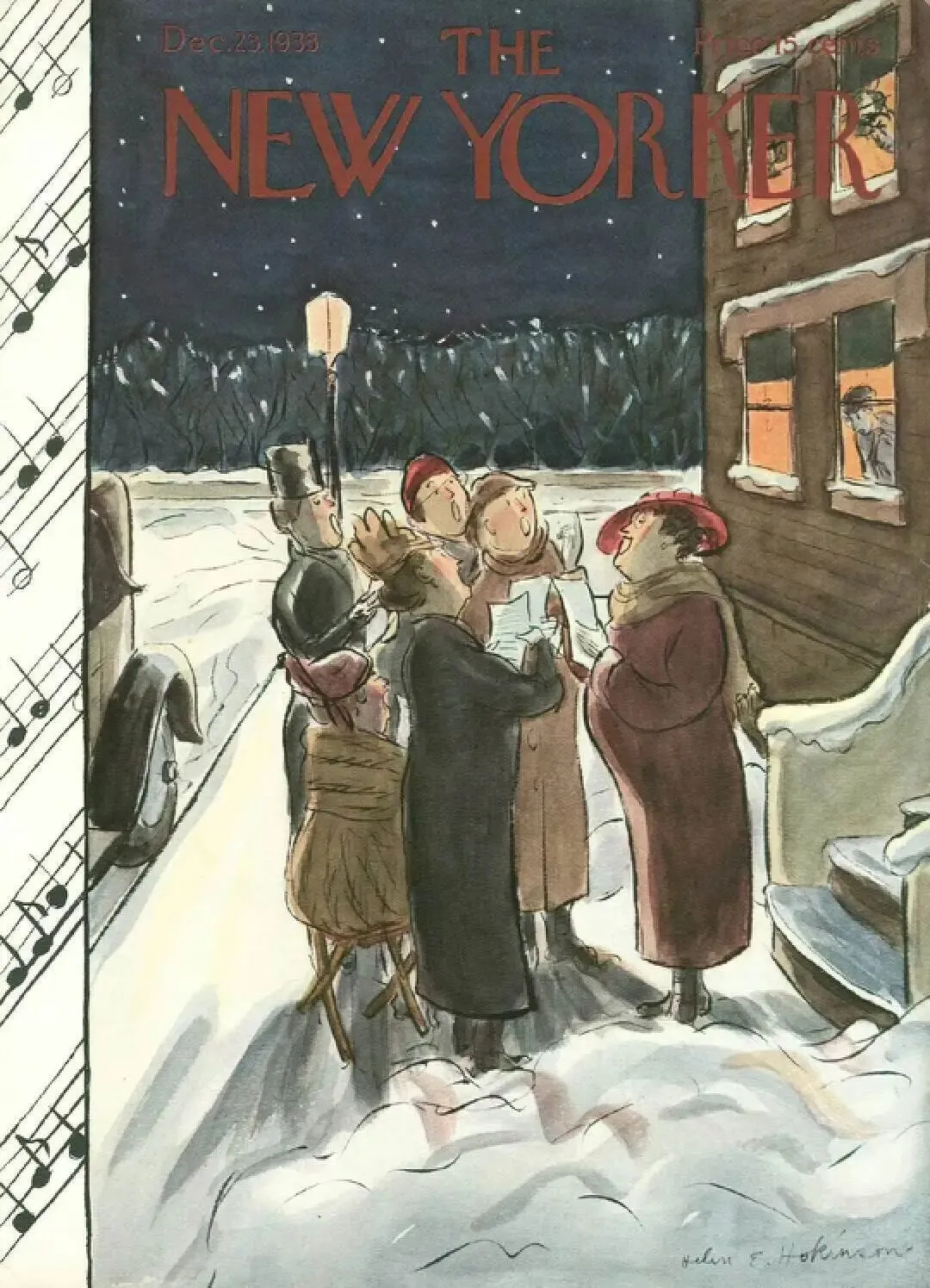 在《纽约客》所收藏的雪景里,“白茫茫的一片”并不是最惹眼的部分。灵动且洋溢情绪的人物,被雪花式拥抱的冬日建筑,甚至是蔓延在空气里的某种温度,都是与雪合唱的旋律。