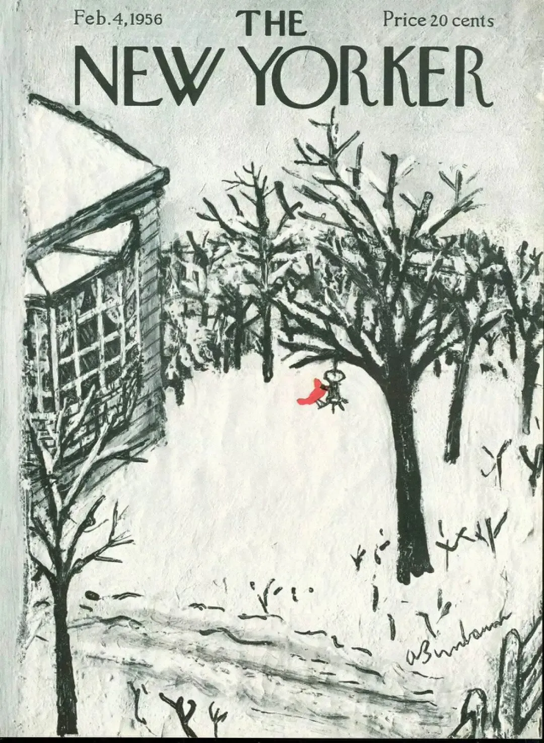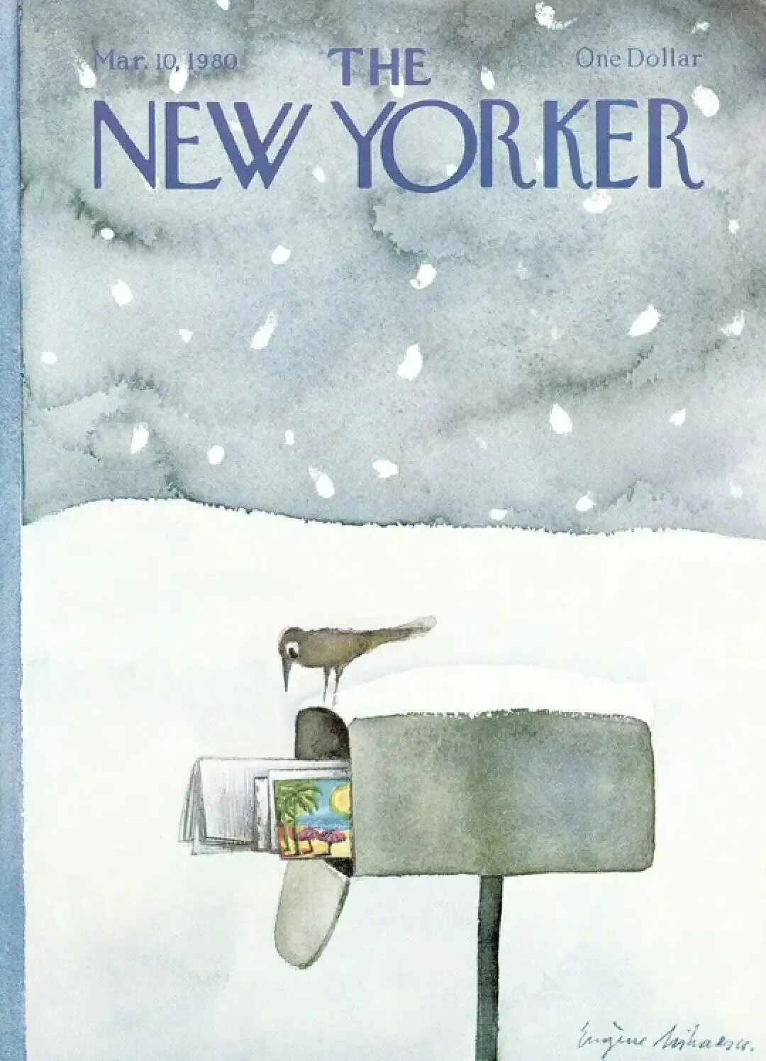 如果你想画冬天,那你不能只画冬天。至少也要是“从你的窗子里看雪”那种张爱玲式的冬天,像《纽约客》一样用一面或大或小的窗户,朝里看是洞穿心事,朝外看则是把雪色裱进画框。