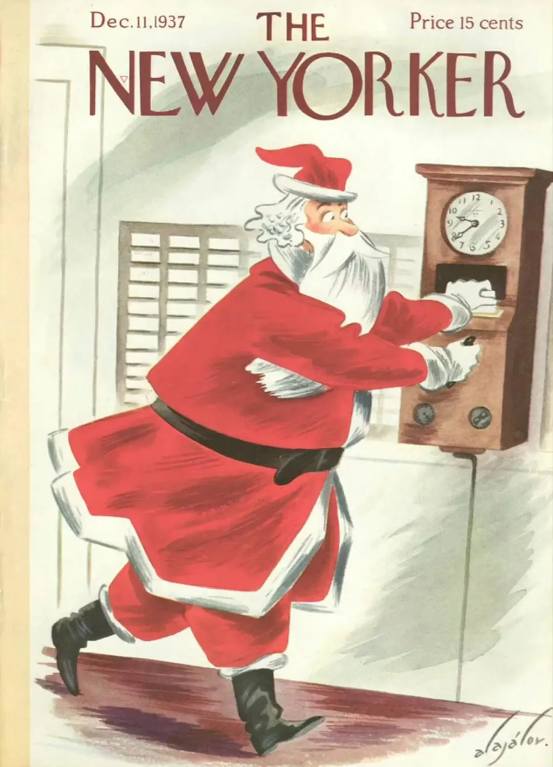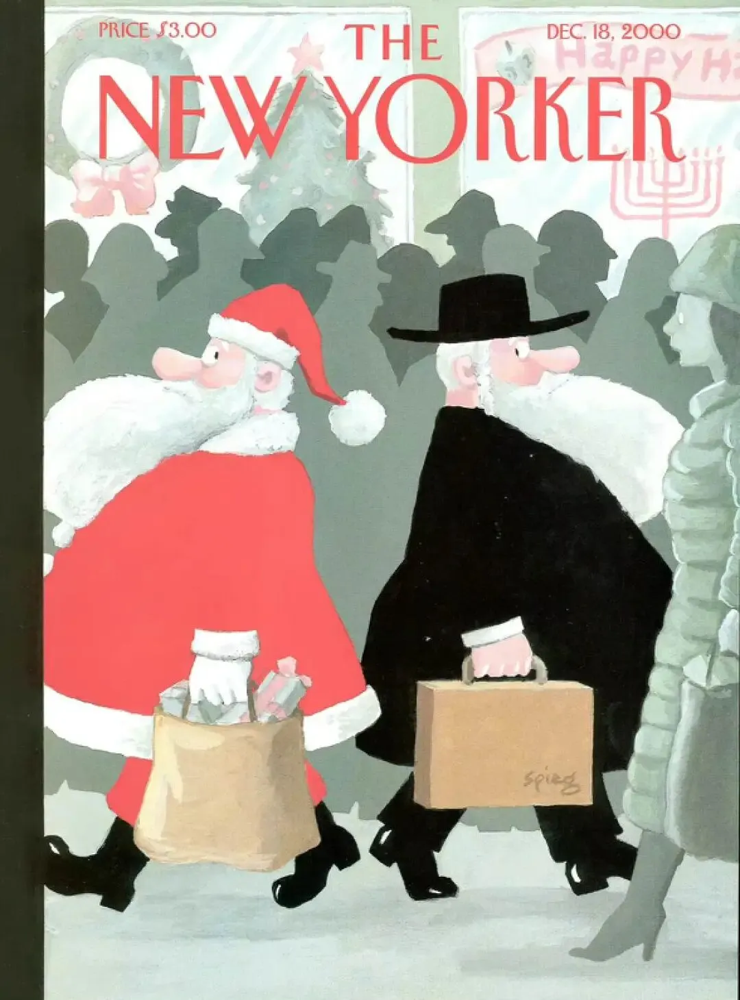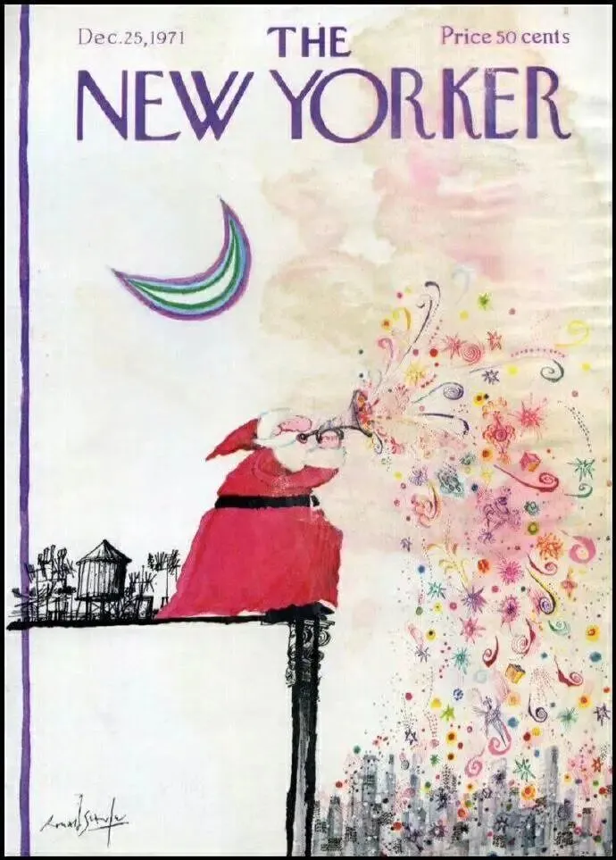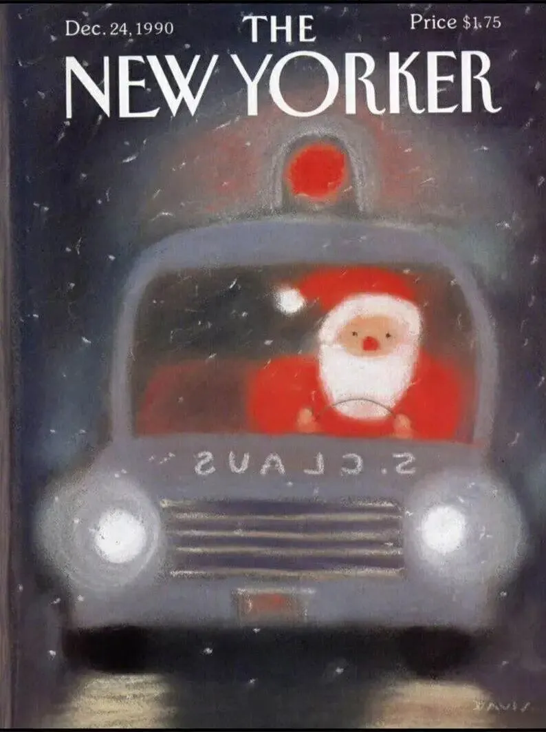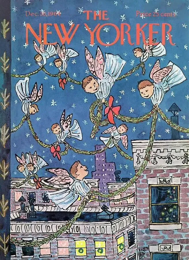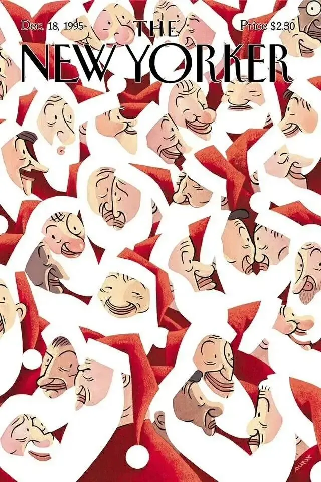 不夸张地说,万圣节的coser能变幻出多少形态,那么《纽约客》封面上的圣诞树就会有多少变体。穿梭在不同的绘画风格里,一棵树的亮点从五彩夺目的灯饰到提着树的人,故事感在其中流淌。