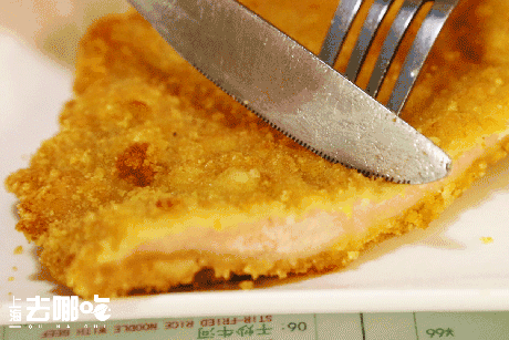 每块猪扒基本300g,不拍面粉,外层只裹上薄薄的一层蛋液和面包糠,炸的金黄通脆,软嫩到稍一用劲能切下一大块!