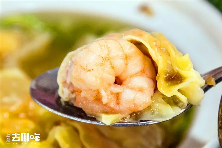 和上海的馄饨不同,港式云吞的个头很大,馅料饱满,隔着皮子都能看见里面的大虾仁!嘴小的妹子,吃上一个就塞满了!