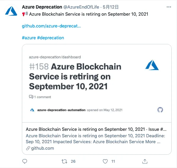 在推出 6 年之后,微软宣布即将终止其 Azure 区块链服务。