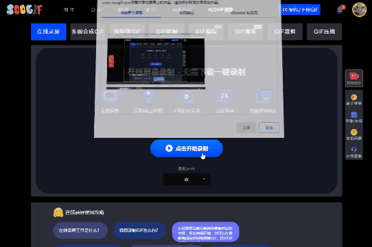 打开SOOGIF工具,选择在线录屏,点击【开始录制】,可以选择录制整个屏幕,或者某个应用窗口,由于我是在网页端打开的《哈哈哈哈哈》,直接选中标签页,然后就可以在线录制了,录制好想要的画面,点击【停止分享】,就录制完成了。