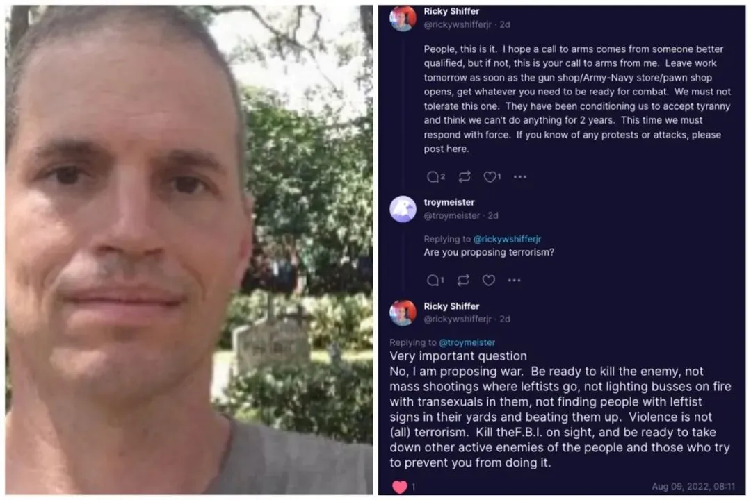 本周二8月9日,希弗尔(Shiffer)在川普的自创社交媒体平台TruthSocial中提倡“发动一场战争”,以回应联邦调查局(FBI)对川普Mar-a-Lago豪宅的突袭。他呼吁川普的“粉丝”,“时刻做好战斗的准备,杀死敌人,杀掉所有FBI。”