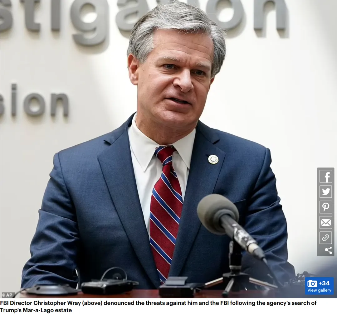 克里斯托弗·雷(Christopher Wray)在本周三还警告其他FBI特工,要开始留意周围环境和潜在的威胁者。