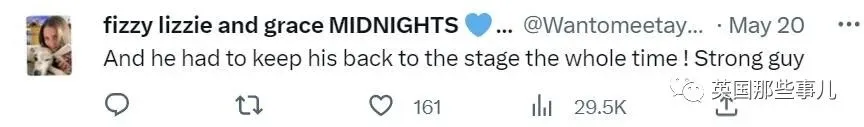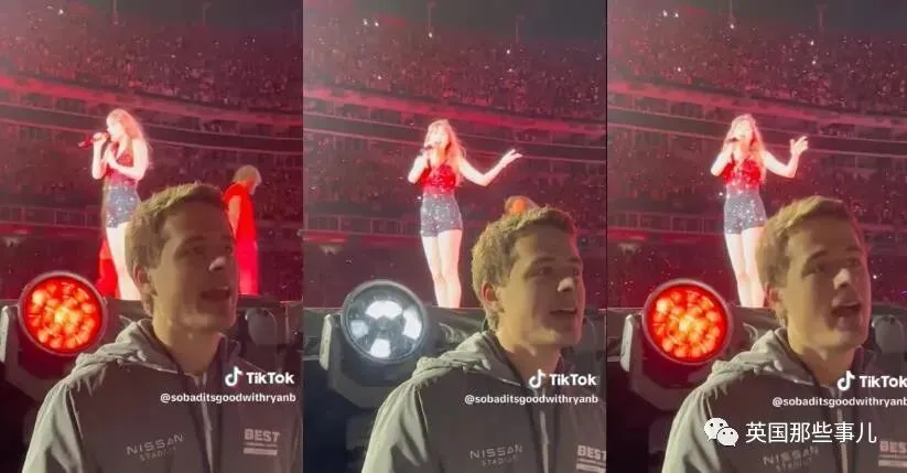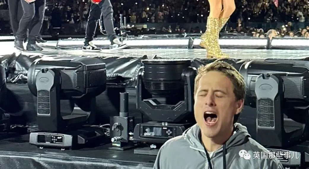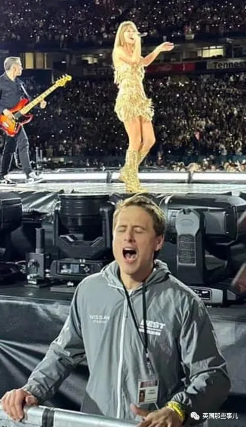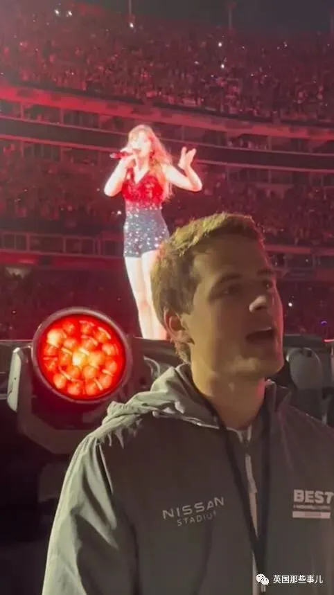 更棒的是,他负责的位置就在舞台侧面,离台上的霉霉近在咫尺,这可是买最前排门票的观众都达不到的距离。