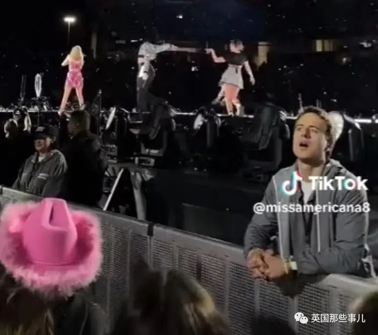 霉霉在台上唱,他就在台下一句不落地跟唱,甚至跟着节拍跳舞。
