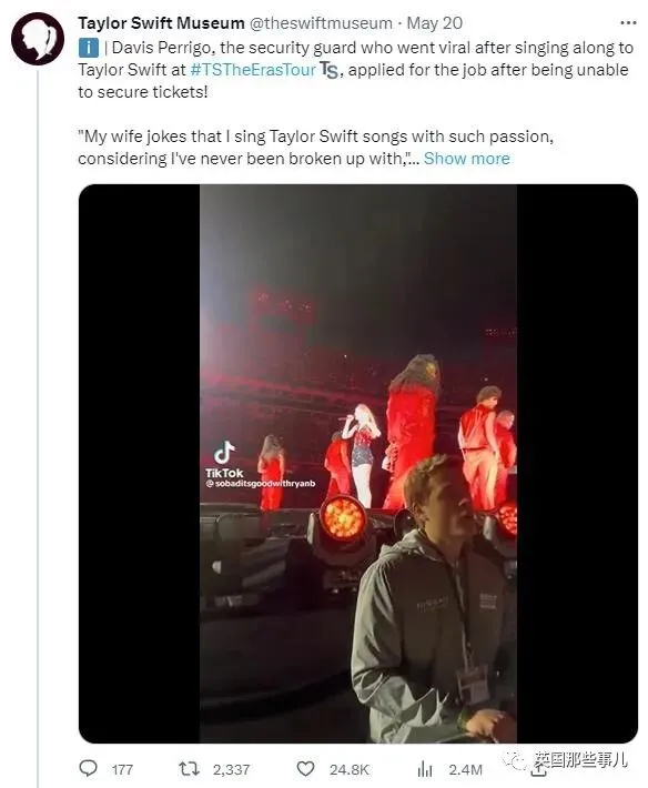 这两天,另一个跟霉霉演唱会有关的小插曲又在网上传开了,这次也跟“保安”有关。