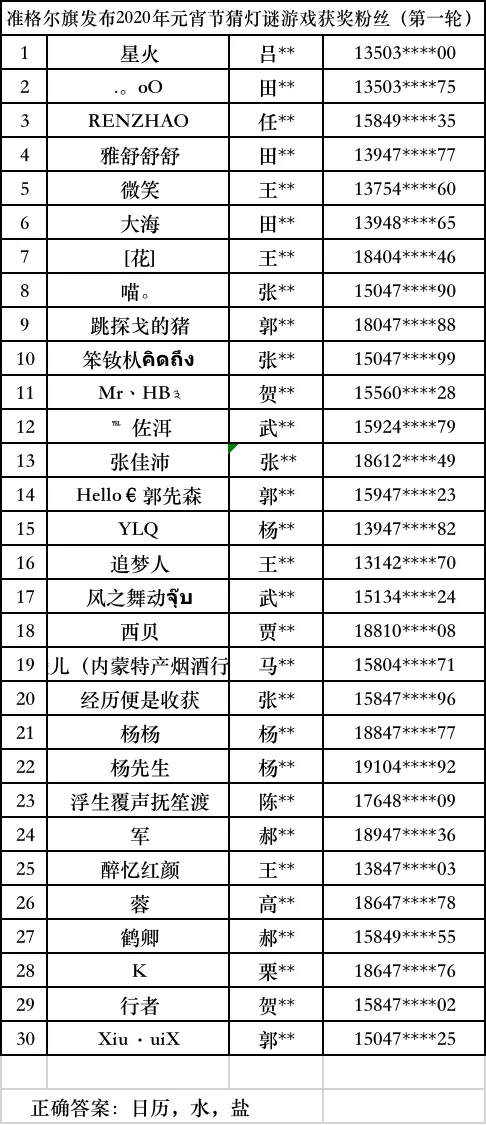 参加准格尔旗发布举办的线上有奖活动的小伙伴