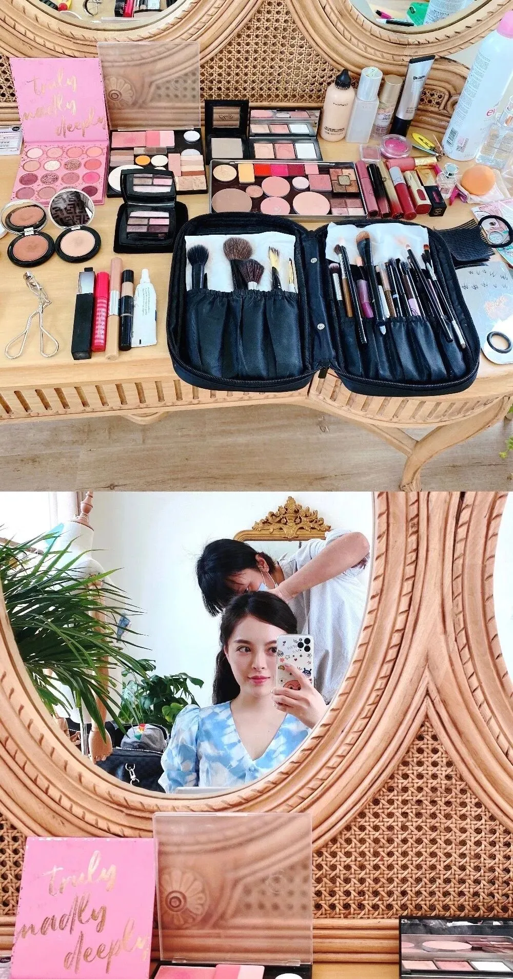 摄影师工作室是有小伙伴帮我做妆发的,我要做的就是自己打底。因为这次拍照从早上到下午,还需要转两个地方,非常累又容易出汗,所以我对底妆的要求就是希望它能非常服帖。