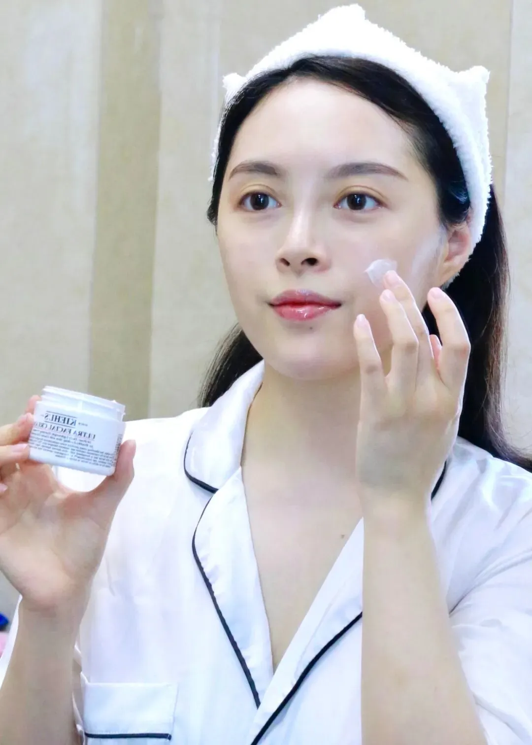所以为了让妆容保持干净和服帖,在这次在上妆前,除了化妆水以外,我只涂了面霜。我涂的是这款我最近一直在用的科颜氏高保湿面霜,相信大家对它不会陌生,这是科颜氏家非常红的一款明星产品。之前我也给大家推荐过这款面霜,说它是我们干皮的真爱面霜!