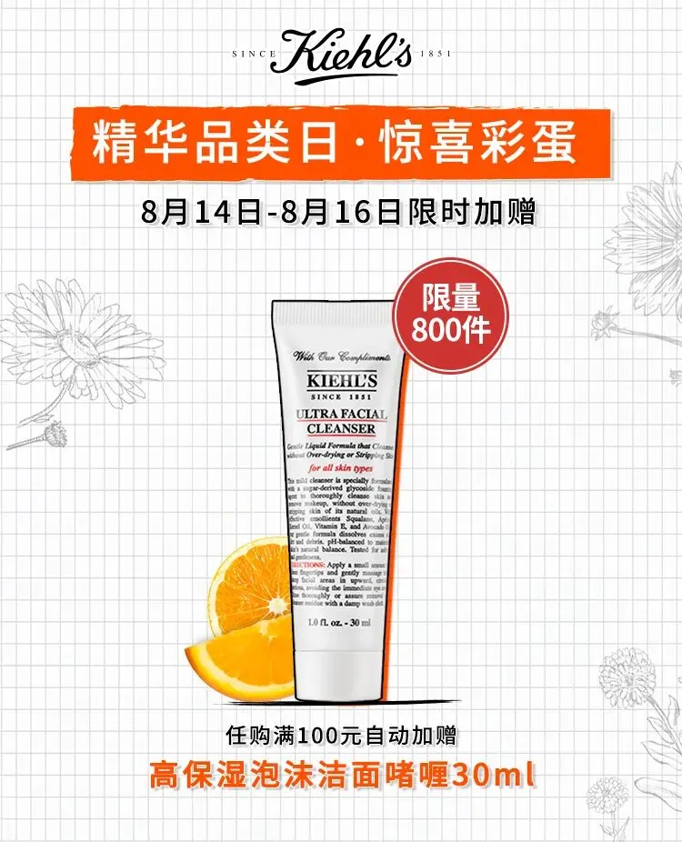 周末彩蛋加赠(高洁30ml),购物满300元加赠丰润精华5ml