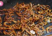 4. 锅中倒入些许炒菜油,油温5成热的时候滑入上好浆的肉丝,炒散后成出备用。