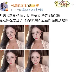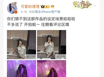 埋埋属于是多个平台都在宣传自己,就是每天会预热自己要直播的内容是什么,还有就是即将拍摄售卖内容,这不最近埋埋就发了一个耐人寻味的文案,说大家肯定猜不到这次特定的场景,不多说,开拍了,配图也是非常的离谱,只见埋埋身穿丝袜加高跟,还有不知道是不是助理还是演员与之待在一起,好像后面就要开启工作了。