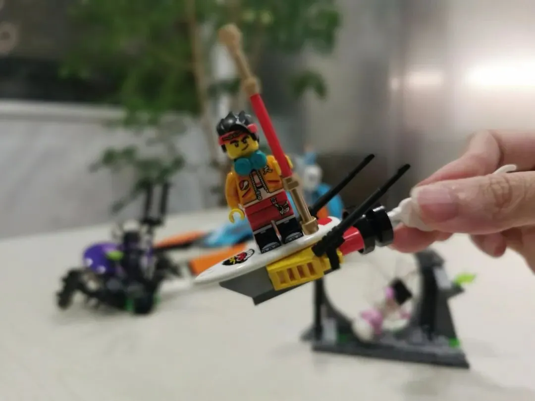 小人仔方面,有7个那么多,一家老小个个都可以分得一个角色玩起来。在我看来,龙小骄最为特别,作为乐高®悟空小侠系列新增的一个女性角色,她头上两个发髻有中国内味了。据说,这是乐高设计师觉得现有的500种头饰都差点中国调调而推出的新款,就为了让中国小孩有更高的辨识度。