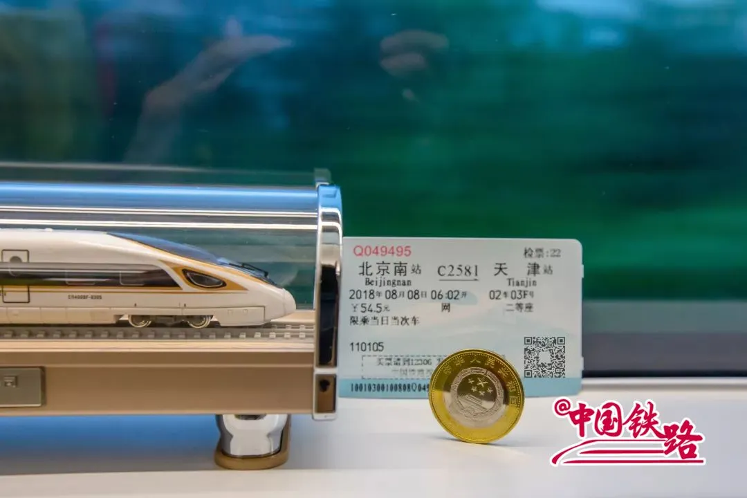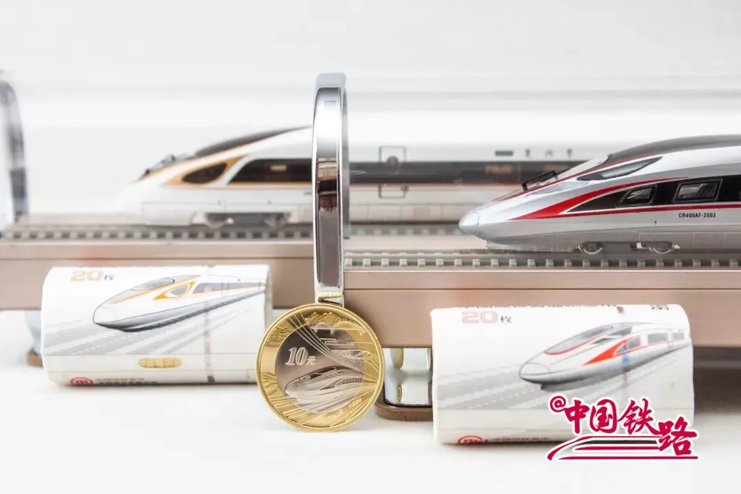 中国人民银行于2018年9月3日发行中国高铁普通纪念币一枚。中国高铁普通纪念币正面图案为国徽;背面图案主景为复兴号动车组,背景为南京大胜关长江大桥、北京南站、“复兴号•中国高铁”文字及高山、梯田、沙漠等。