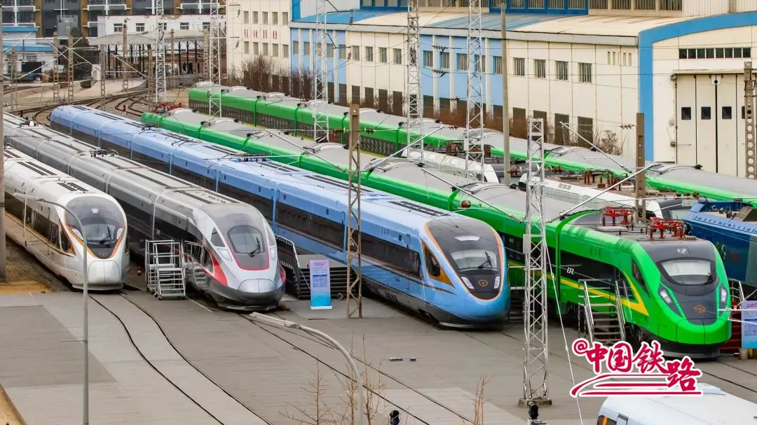 中国铁路科技创新成就展在北京国家铁道试验中心开幕,一大批中国自主研发的先进铁路技术装备集中展出。时速350公里17辆超长编组、时速250公里8辆编组、时速160公里动力集中型等多款复兴号新型动车组首次公开亮相。