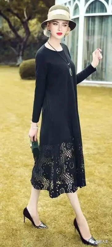 针织加蕾丝花边,这样的毛衣裙太气质了,有木有!(附图解)