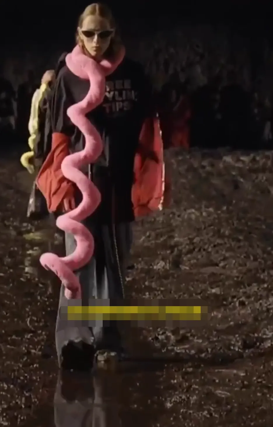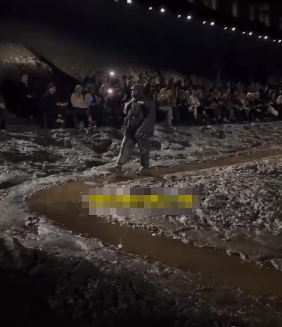 泥泞的秀毯上,模特们人均一脚泥……