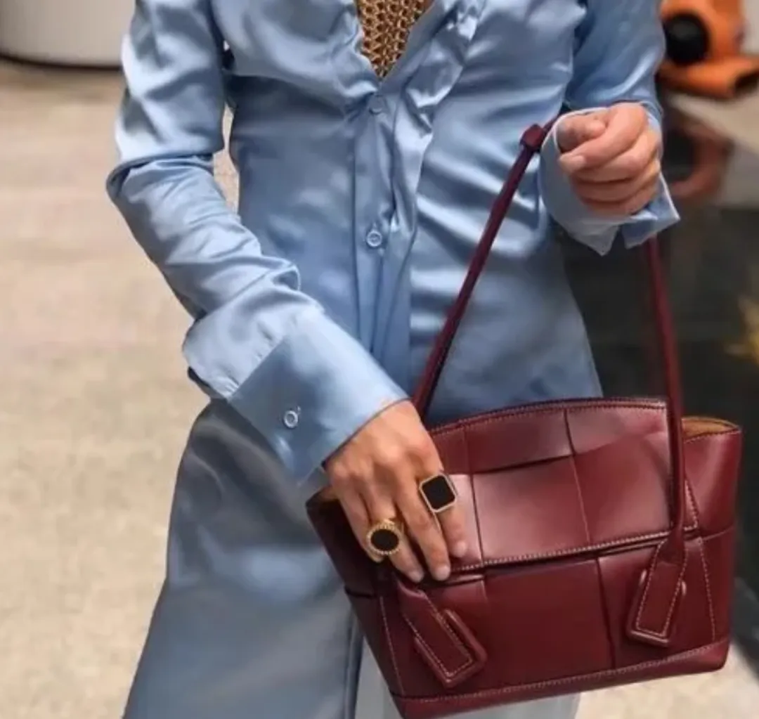 比如:这款编织包与三角金属搭扣的组合,看了就想剁手