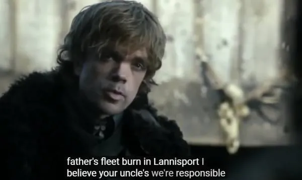 这个事件,提利昂在第一季和Theon见面后有提到过: