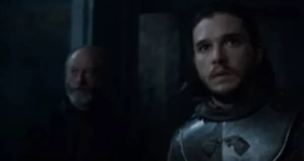 在第二款预告片中,有一个布兰在临冬城神树下的镜头,旁边站着的是临冬城大学士。