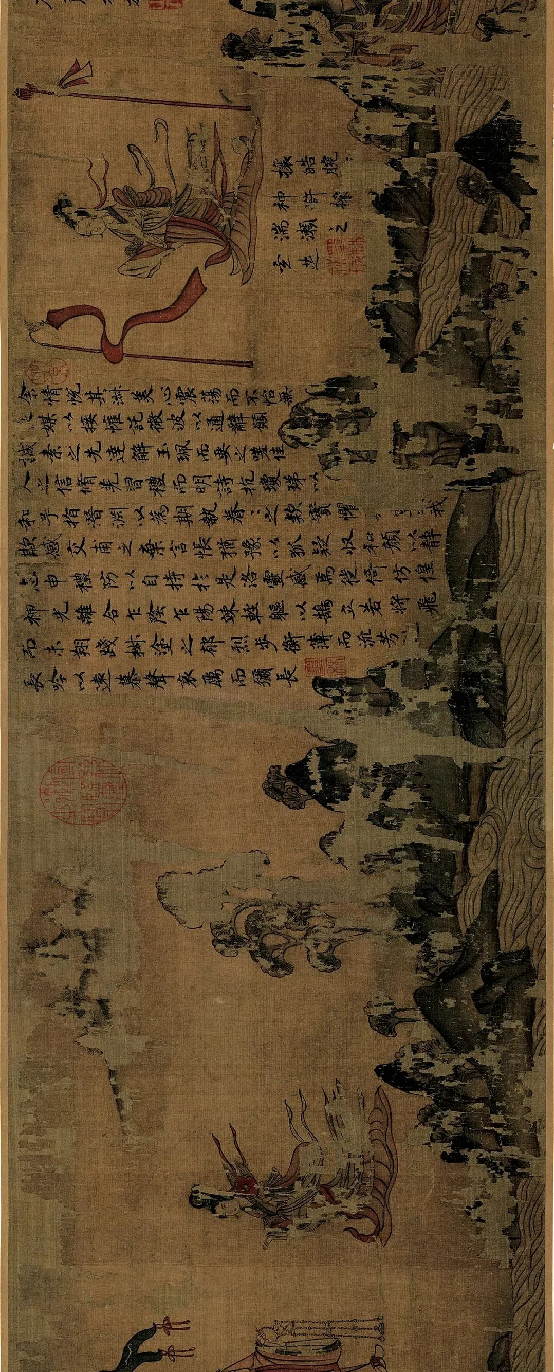 这幅多个故事情节组成的类似连环画而又一气贯通的长卷,由东晋名士顾恺之依曹植所作的《洛神赋》,传神还原建安才俊与洛水神女的旷世情缘。