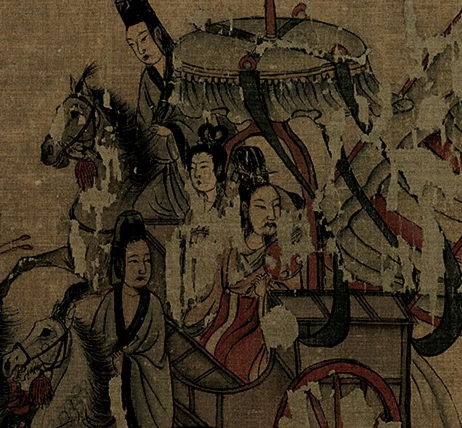 辽宁省博物馆所珍藏的这件纵26.3厘米,横641.6厘米,绢本设色,是现存时代最早的唯一图文并茂的摹本画面斑驳漫漶,反而愈发显得古朴。