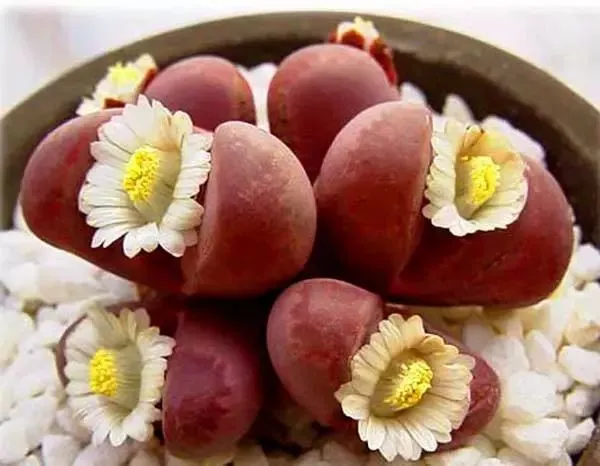 此乃石头花,又叫做石生花,它的外形酷像彩色的鹅卵石!开出来,就是石头开花一般,结合石头花盆,楞楞分不清哪颗是石头,哪颗是花。