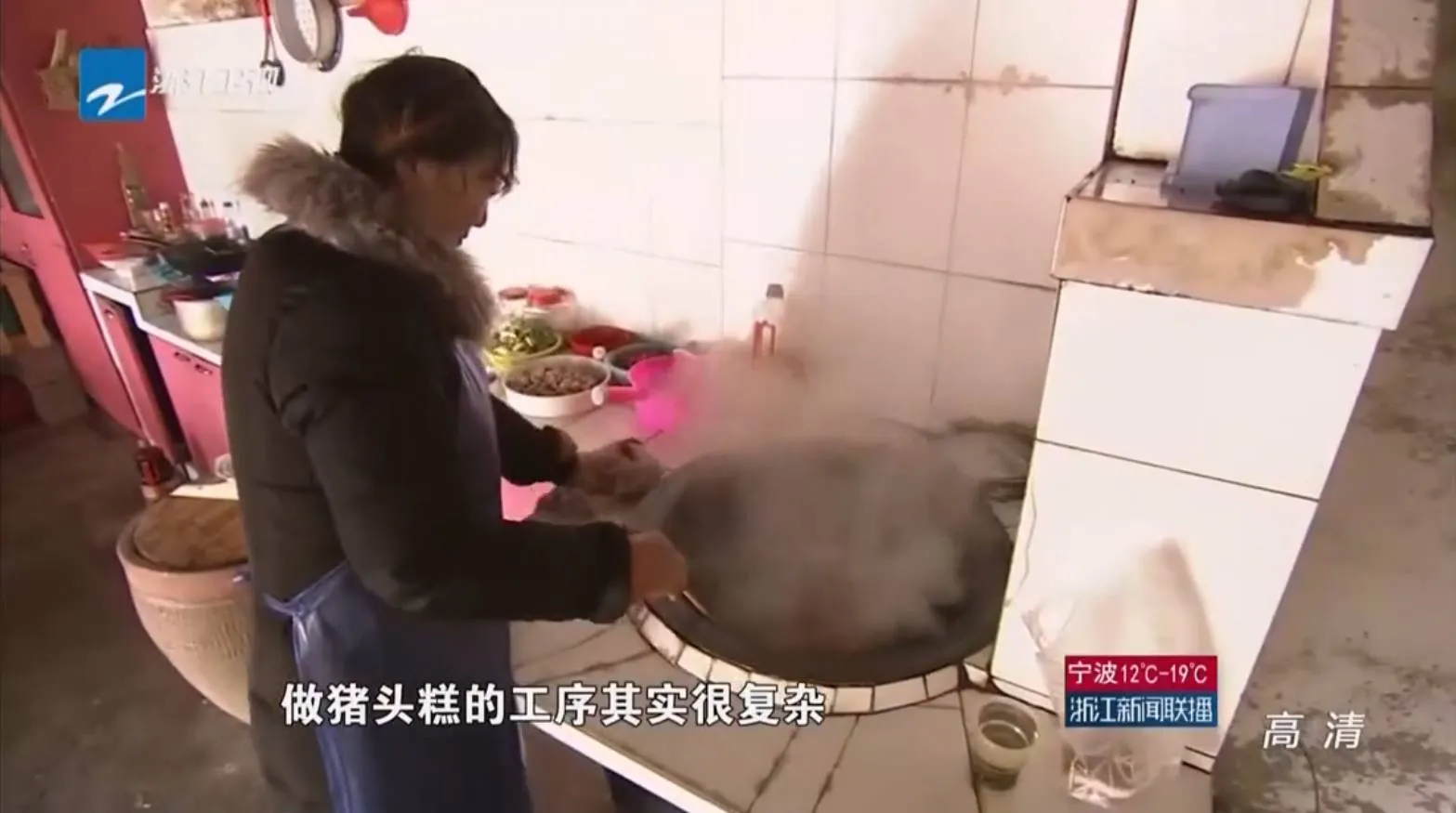 这三位小伙都曾经离家闯荡,那时他们最牵挂难忘的美食正是猪头糕。因此他们特意找到当地卢奶奶来为「寻味桃源」制作猪头糕。卢奶奶曾多次出现在当地电视台的节目当中,她做的猪头糕可算家喻户晓。