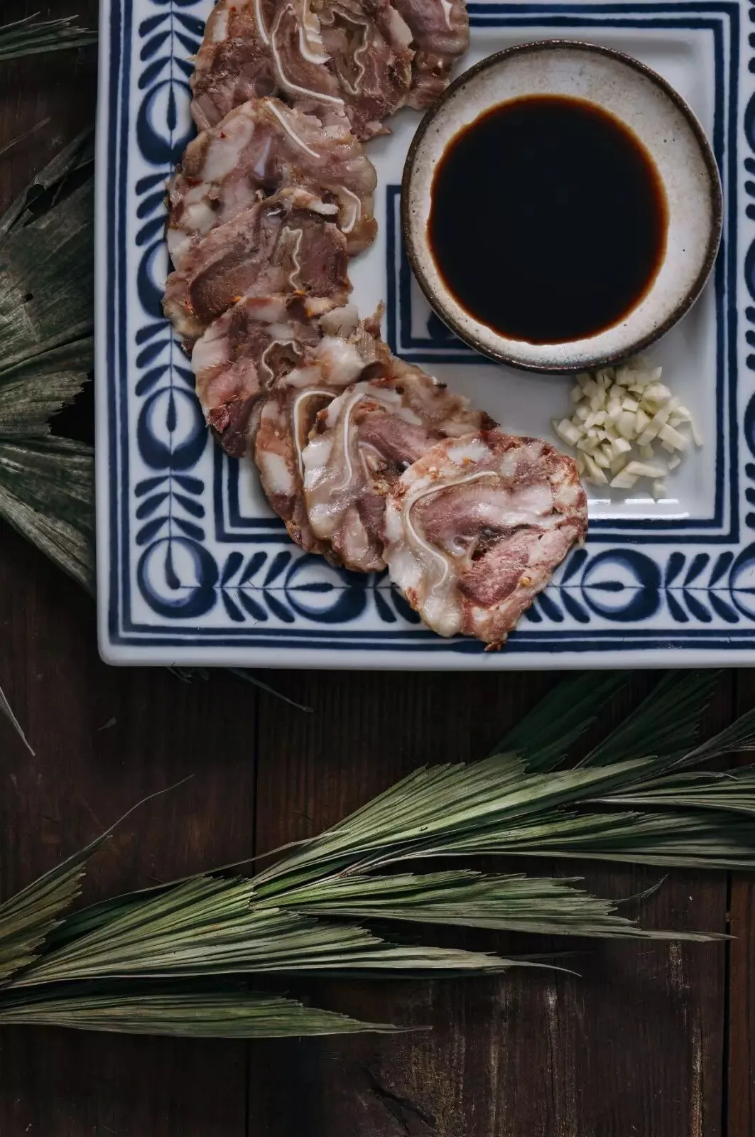 往常的时候,本地人喜欢将猪头糕切成薄片,加玫瑰米醋、生抽、蒜末姜末、些许糖调制出蘸料,解腻的同时更让香腴的肉味爬升上更高层次,齿间的满足感难以言喻……
