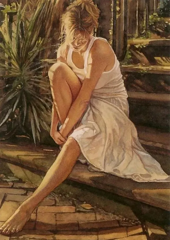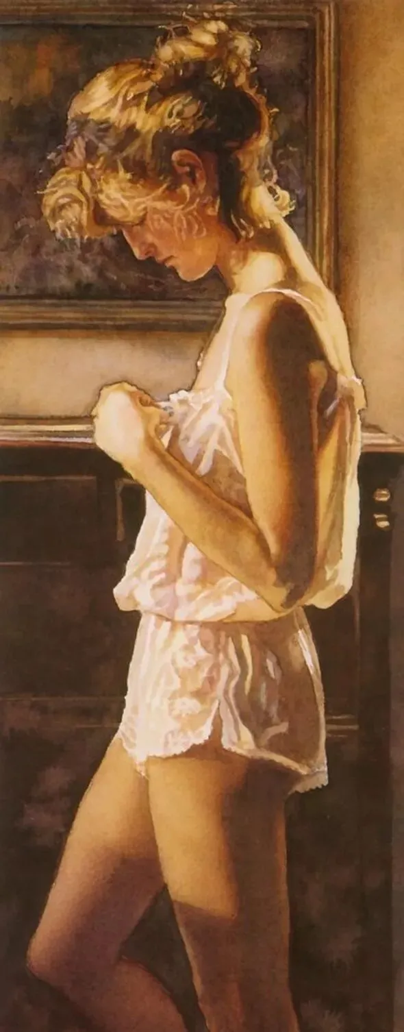 史蒂夫·汉克斯以妇女和儿童为主要创作对象,画中充满了生活的平实感,是一种让人见了就会怦然心动的感动,是一种深度触摸人们平常实际生活,和再现“平实”中的激情涌动的作品。史蒂夫·汉克斯最擅长人体画,是这个领域里顶级的艺术家。他的水彩画里,深深地饱含着情感,是充满光影的诗句。留下一幅美的画时,也留住了他心中最美的时光。