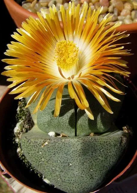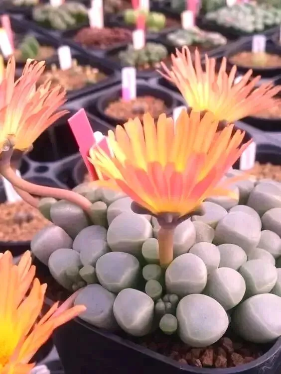 此乃石头花,又叫做石生花,它的外形酷像彩色的鹅卵石!开出来,就是石头开花一般,结合石头花盆,楞楞分不清哪颗是石头,哪颗是花。