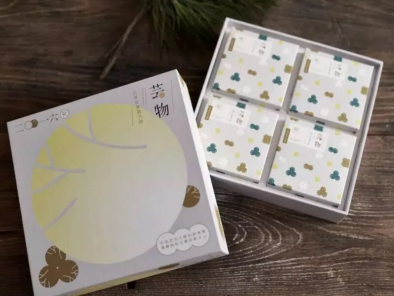 这盒月饼的包装也极为精致,青石绿、落叶黄、摸黑、素白,再加之中秋圆月清亮的明黄,显得质朴温和,又不失格调,很适合馈赠亲友。