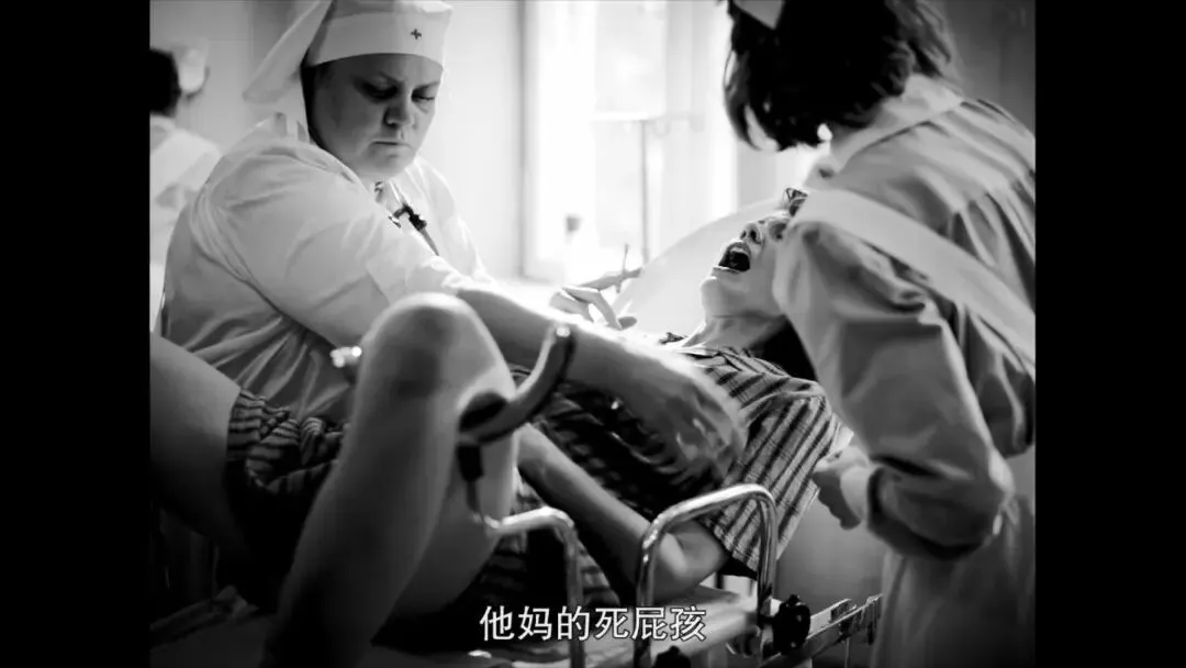 躺在产床上的女人,一边抽着烟,一边破口大骂,鬼吼狼嚎般“他妈的死屁孩,给我滚出来,你这王八蛋。”。