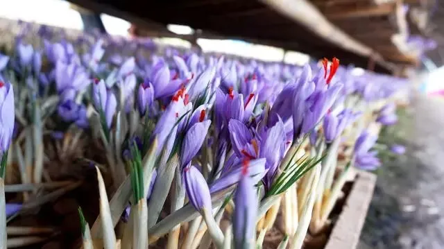 在建西镇瀛洲西红花种植基地里,一排排西红花球整齐的摆放在架子上。朵朵紫色花瓣美丽绽放,包裹着黄色的雄蕊,红色的雌蕊色彩鲜艳,花香怡人。合作社负责人说,今年西红花长势较好,球心比去年要大,花的产量也比去年高。由于西红花花期较短,一般十二天左右。所以农户们这两天都在忙着采摘鲜花,剥离花朵中间的纷纷红色花丝,再进行烘干处理。